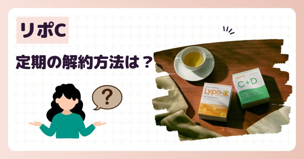 リポC定期便の解約方法は1通りです。 マイページで解約する リポC定期便を解約したい場合、マイページで解約することができます。 リポC定期便は次回注文の決済前日まで解約できます。 決済されるまでは大丈夫なんだ! リポC定期便の解約方法について、わ... -