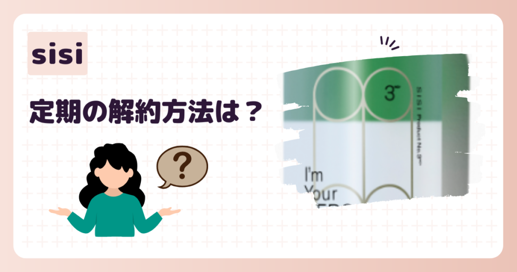 sisi定期便の解約方法は2通りあります。 電話をして解約する マイページから解約する sisi定期便を解約したい場合、電話とマイページで解約することができます。 sisi定期便は次回発送予定日の7日前まで解約できます。 マイページからだといつでも手続きで... -